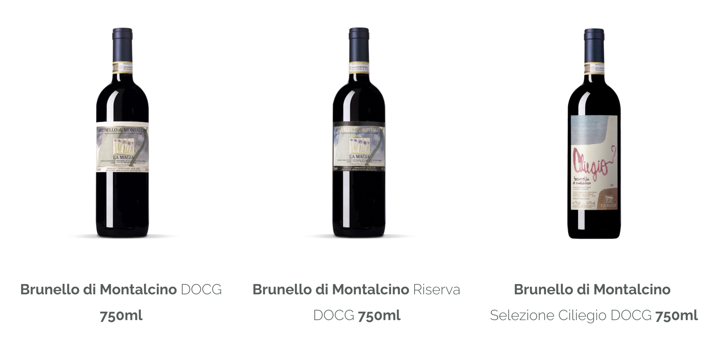 Established in 1979, this certified organic vineyard on 52 hectares sits at 400-450 meters above sea level. Facing southeast, the sandy soil contains a good quantity of lime and clay which aids water retention, while the volcanic influence contributes to a wonderful minerality. Power and structure with superb elegance are the result in La Magia’s Brunellos, aged for three years in 500 litre French oak tonneaux.